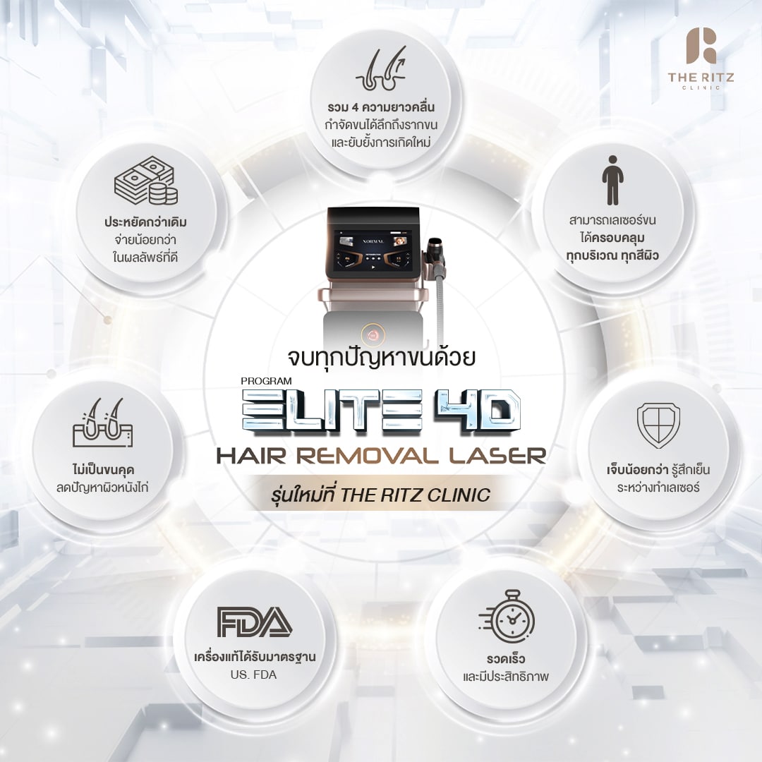 เรื่องของ “ขน” เป็นเรื่องที่หลายคนให้ความสำคัญเป็นอย่างมาก เพราะขนที่ขึ้นในบริเวณที่ไม่ต้องการส่งผลให้เกิดความไม่มั่นใจ อีกทั้งการกำจัดขนด้วยวิธีดั้งเดิม ยังทิ้งร่องรอยหนังไก่เอาไว้ ทำให้สัมผัสไม่เรียบเนียน แต่ในปัจจุบันเทคโนโลยีด้านการกำจัดขนได้พัฒนาขึ้นมาก สามารถกำจัดขนเฉพาะบริเวณที่ต้องการได้อย่างเรียบเนียน โดยเฉพาะกับเลเซอร์ Elite 4D Hair Removal Laser ที่เป็นเทคโนโลยีใหม่ ที่มี 4 พลังงานไม่ว่าจะเป็น 755, 808, 940 และ 1,064 นาโนเมตร เพื่อการกำจัดขนอย่างมีประสิทธิภาพ ช่วยตอบโจทย์ผิวเรียบเนียนให้กับผู้เข้ารับการรักษา จนได้รับความไว้วางใจ และกลายเป็นที่นิยมอย่างแพร่หลาย
