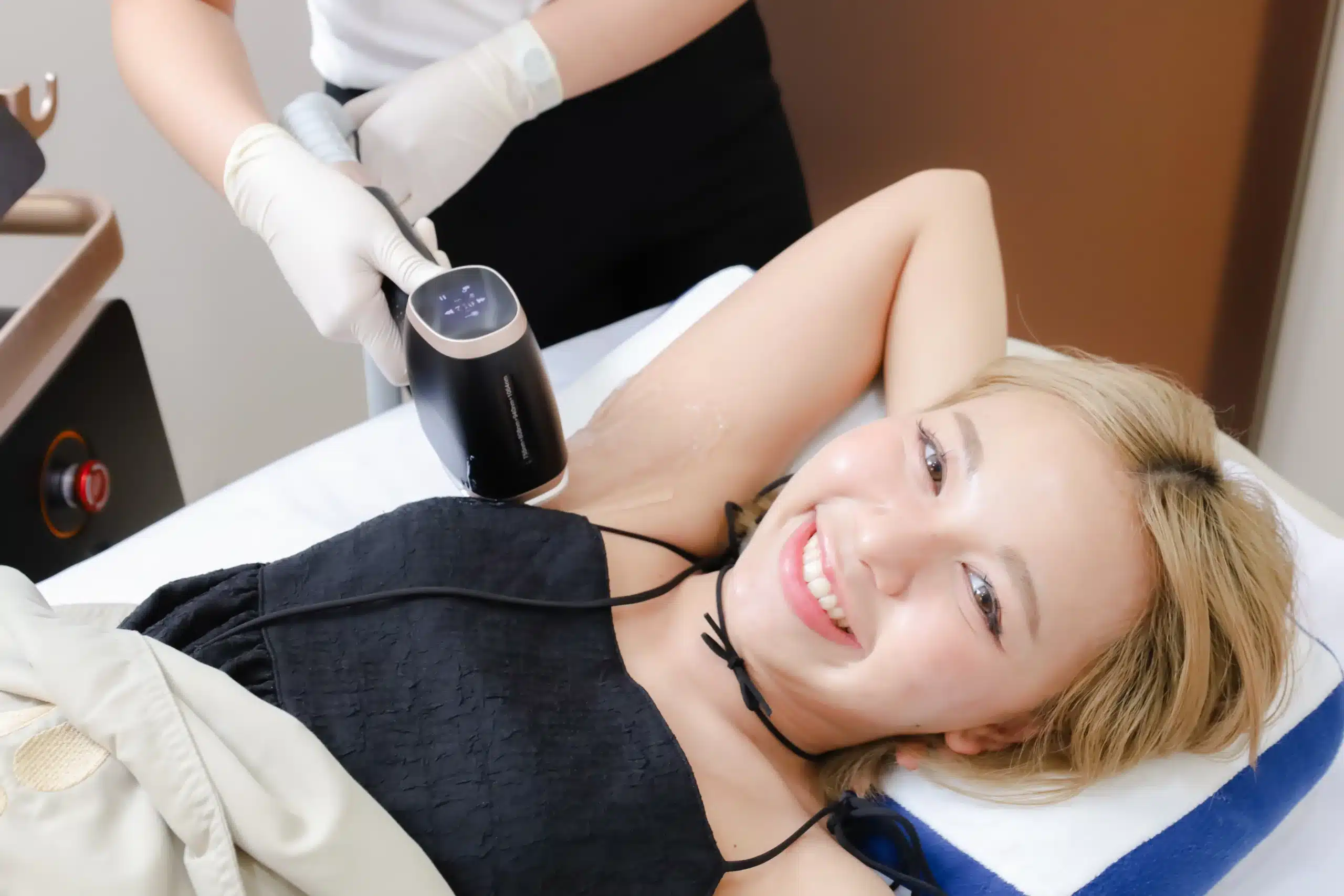THE RITZ CLINIC เรามีทีมผู้เชี่ยวชาญที่พร้อมให้คำปรึกษาและออกแบบโปรแกรมเลเซอร์รักแร้ที่เหมาะสมกับคุณโดยเฉพาะ เราเลือกใช้เทคโนโลยีเลเซอร์กำจัดขนที่ทันสมัยและหลากหลาย ผ่านการรับรองมาตรฐาน อย.ไทย รวมถึงนวัตกรรมอย่างเครื่อง Elite 4D ที่สามารถปรับพลังงานให้เหมาะกับทุกสภาพผิวและเส้นขน และ โปรแกรม Moveo Red Laser ที่เน้นความอ่อนโยน ให้ผลลัพธ์ที่ดีพร้อมความสบายขณะทำ เพื่อให้คุณได้สัมผัสประสบการณ์การกำจัดขนที่มีประสิทธิภาพและปลอดภัย คืนความมั่นใจให้ผิวใต้วงแขนเรียบเนียนกระจ่างใส